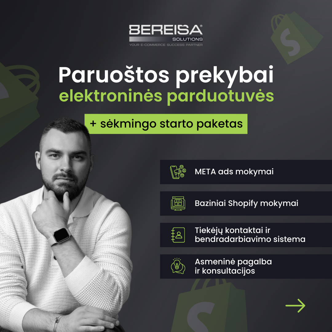 BEREISA SOLUTIONS siūlo pilną paruoštą paketą, kuriame yra ne tik parduotuvė, bet ir: